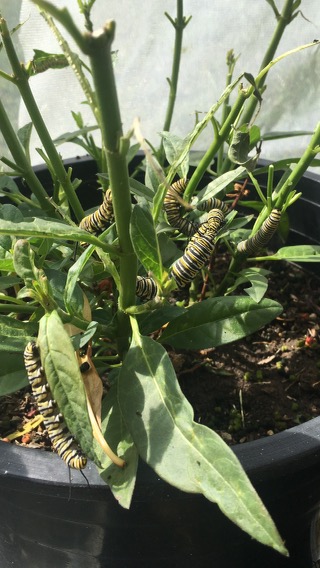 Sunday, July 23 Paul has 20 monarch caterpillars in Zone 3. They are eating milkweed faster than the plants can grow.